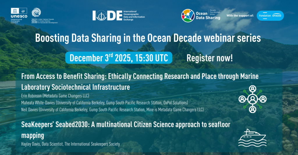 Join us on December 3rd for the second webinar in the Boosting Data Sharing in the Ocean Decade series, where we spotlight Decade Actions and highlight the importance of collaboration for better data sharing across the UN Ocean Decade.